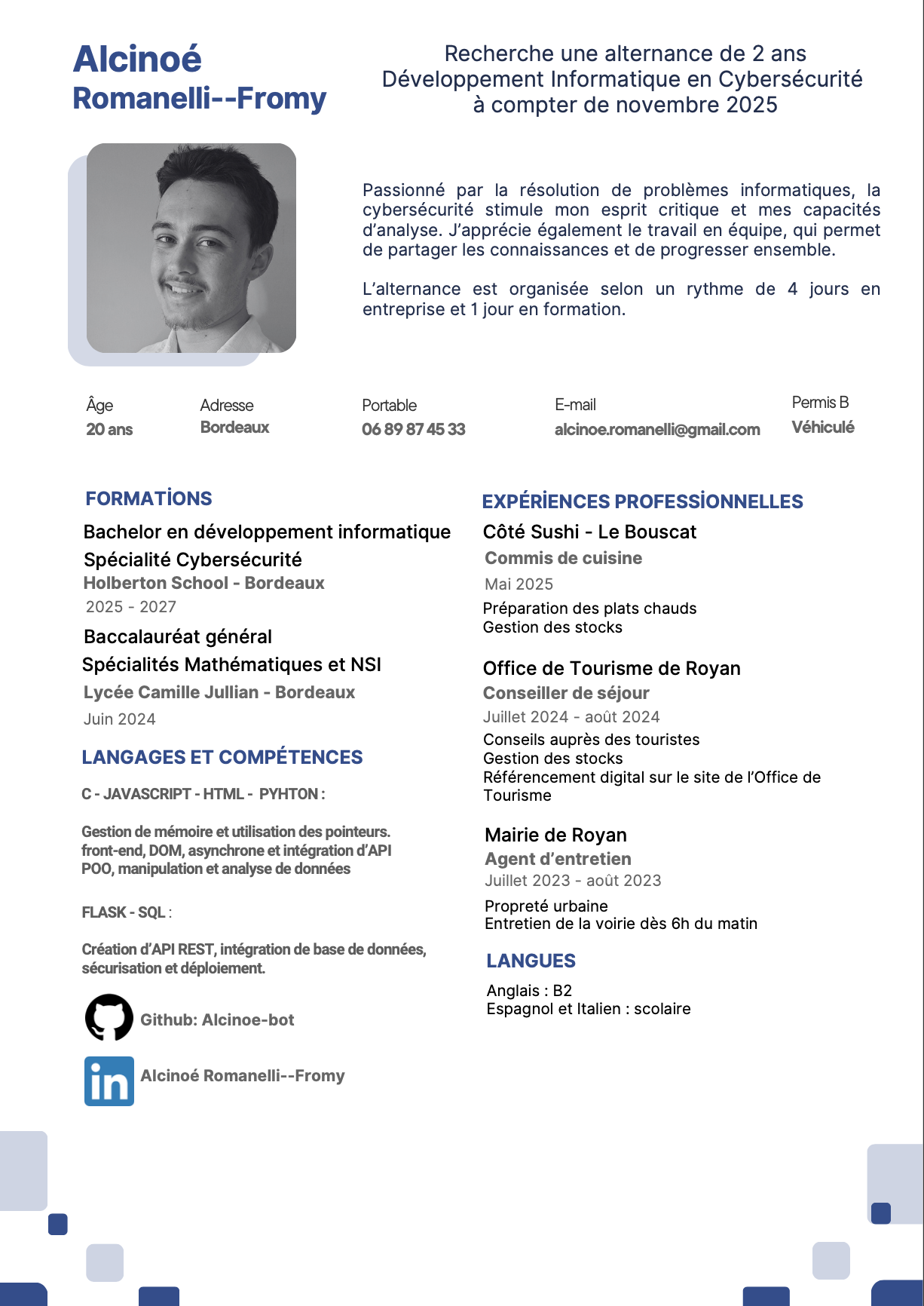 Candidature pour une alternance en informatique – Bordeaux (33)